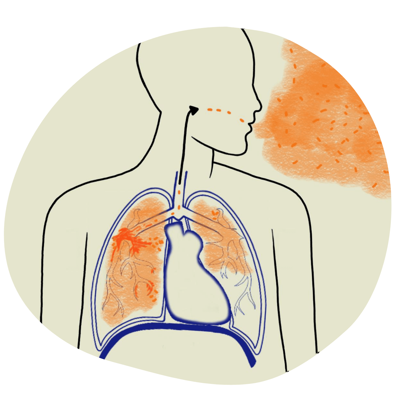 ![]() | The TB Germs are in the body and hurting the body in some way. When the TB bacteria are in the lungs or the neck, they can spread into the air. TB can be a sneaky disease! For some people, they can have Active TB for weeks or months before they even start to feel sick. This is one of the reasons why we do screening for Active TB (with X-ray and spit tests) in some people who don’t feel sick at all. |