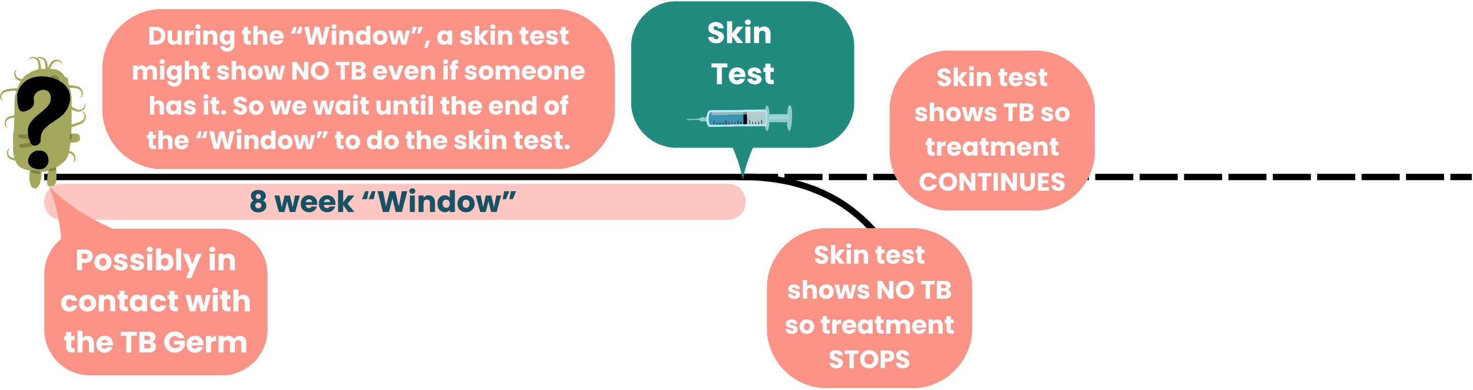 It is called Window Period Treatment because of the ‘window’ of time it takes for the TB bacteria to ‘grow up’ enough to be detected by the TB tests.